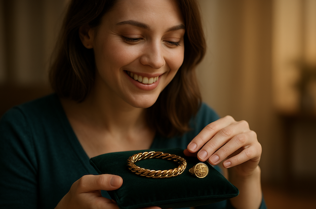 — Золотые. Перстень и браслет. Могу фото прислать.