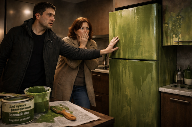 — Неожиданность… — всхлипывала она. — Она выкрасила холодильник! В зелёный! Под что вообще?!