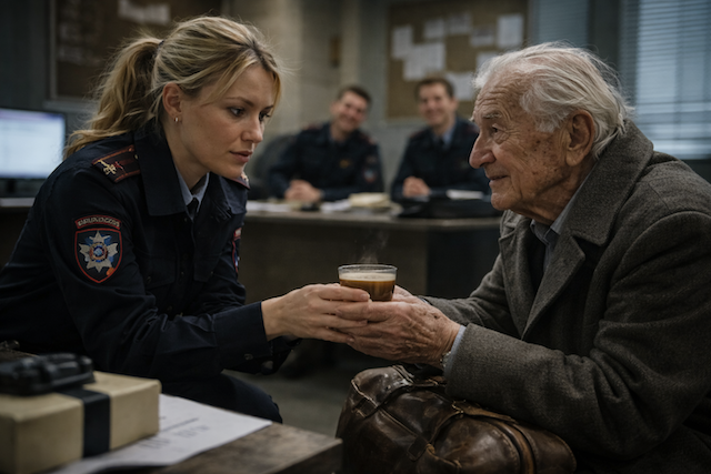 — Возьмите, пожалуйста, — мягко сказала она, протягивая старику дымящийся стакан. — Вы, наверное, замёрзли.