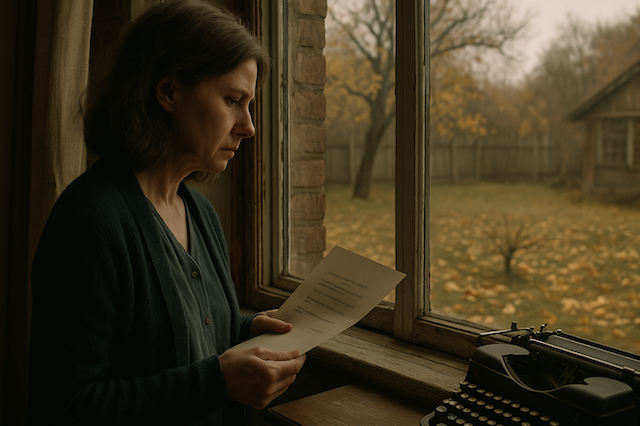 Марина стояла у окна старого дома, где когда-то звучал смех, запах пирогов и разговоры за вечерним чаем. Осенний ветер гонял по двору жёлтые листья, и они падали на выцветшую траву, словно напоминания о прожитых годах. В руках — конверт, который несколько минут назад вручила мать.