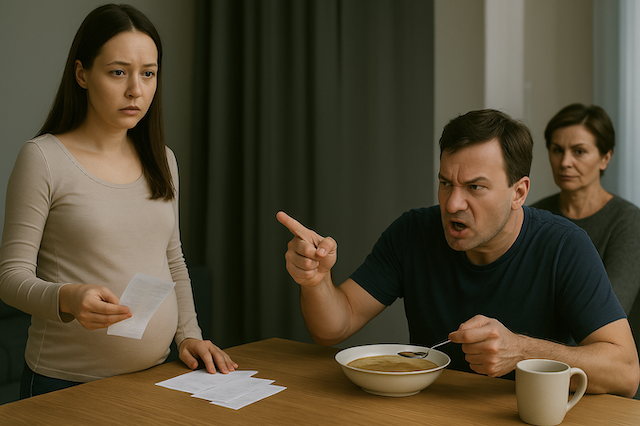 Марина вошла в квартиру, держа под мышкой папку с квитанциями. На улице бушевал холодный ноябрь — серое небо, ледяной ветер, стук дождя по подоконнику. Она сняла мокрую куртку, отряхнула воду, повесила одежду в прихожей и тихо выдохнула. Спина ныла, ноги болели, голова гудела. День выдался изматывающим — поликлиника, очереди, врачи, оплата анализов. Беременность шла четвёртый месяц, живот уже округлился, хотя Марина старалась носить свободные вещи.