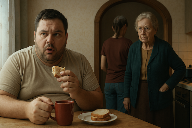 Мария Петровна остановилась в дверях кухни, окинула взглядом зятя за столом. Тот замер с бутербродом на полпути ко рту, поперхнулся чаем.