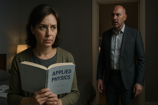 Марина застыла с учебником по прикладной физике в руках. Формулы рассеивались перед глазами, превращаясь в бессмысленные линии. Павел стоял в проёме спальни — уверенный, в новом сером костюме, с лоснящейся макушкой.