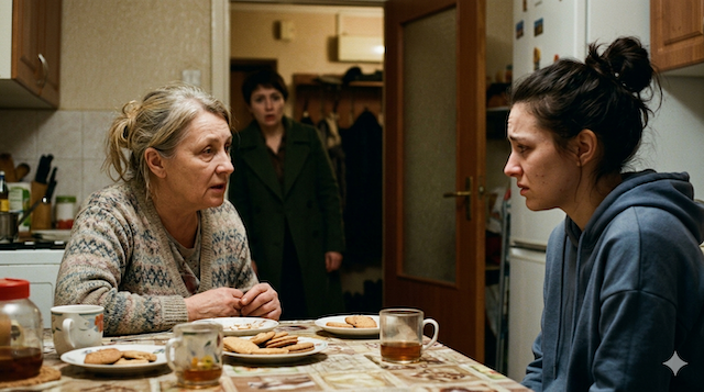 Однажды я вернулась домой раньше обычного. Магазин закрыли на санитарную обработку — где-то в подсобке нашли мышь, и всех сотрудников отправили по домам. Я тихонько зашла в квартиру, стараясь не шуметь, думая, что мама спит — она часто ложилась отдохнуть днём. Но в прихожей горел свет, и из кухни доносились голоса. Мама разговаривала со своей подругой Галиной.