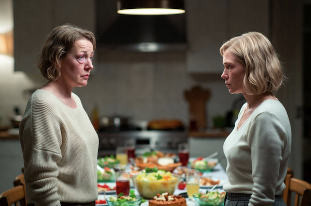 Когда гости начали расходиться, Вера помогла матери убрать со стола. Ольга тоже взялась за посуду, но сестра молча забрала у нее стопку тарелок, не сказав ни слова. Елена Сергеевна наконец заметила странную атмосферу.
