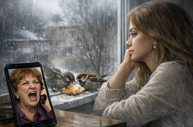 Я не отвечала и рассеянно глядела в окно. Там воробьи делили кусок булки. Один — серый, взъерошенный — налетал на другого, более упитанного, с глянцевыми перьями. В этой возне было что-то до отвращения знакомое. А свекровь продолжала надрываться, так что я нарочно отодвинула телефон, чтобы не заложило уши.