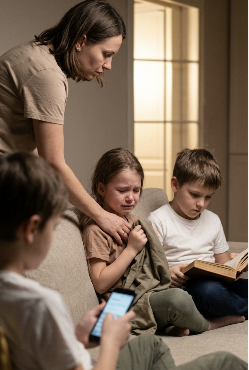 Лана вывела детей в коридор. Артём шмыгал носом, Лика просто стояла, глядя в пустоту.
