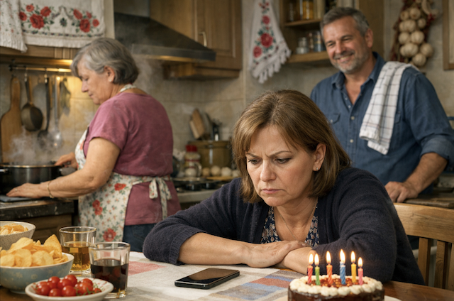 За праздничным столом собрались все. Сергей сидел во главе, рядом с ним Марина, потом Денис, а рядом с ним — Елена. Я заняла свое привычное место у окна, спиной к теплой батарее. Чугунная ребристая поверхность приятно грела через тонкую ткань блузки, и я вдруг подумала, что в последний раз мне было по-настоящему тепло внутри, наверное, очень-очень давно.