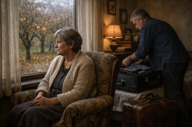 Валентина Сергеевна расположилась в старом кресле у окна, наблюдая, как осень медленно усыпляет сад. За её спиной, перекладывая вещи и щёлкая замками чемоданов, метался Игорь — человек, с которым она прошла больше сорока лет. Целая эпоха, прожитая плечом к плечу, а теперь он решил поставить точку. Хотелось разрыдаться, чтобы стало хоть немного легче, но слёз не было — лишь жгучий сгусток боли внутри.