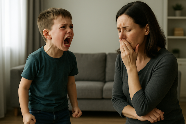 Высокий детский голос резал по нервам, каждое слово будто стучало в виски. Артём стоял посреди комнаты, лицо раскраснелось от истерики. Его маленькие кулачки дрожали.