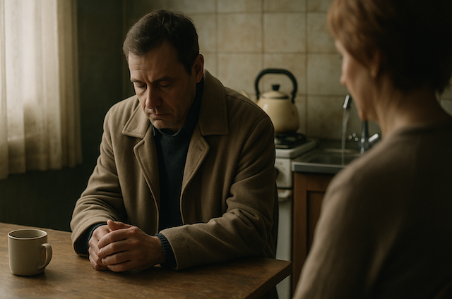 Он не поднимал взгляда. Сидел в пальто, как будто пришёл не домой, а на короткую остановку между двумя станциями. Я отметила: у него дрожат кисти. Те самые, что когда-то вертели детские колёса, забивали гвозди в крыльцо, отодвигали от меня мокрые волосы после дождя. Я не кричала. Просто слушала, как кухня наполняется тонким, острым звуком — кажется, текла вода из крана, но казалось, будто струится из меня.