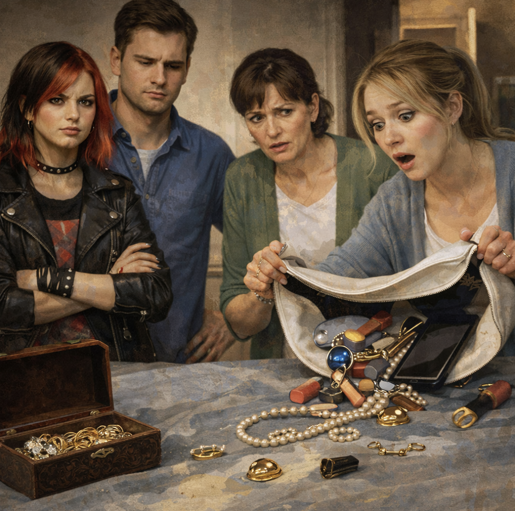 Она вытряхнула содержимое на покрывало — и вместе с косметикой и телефоном посыпались пропавшие драгоценности.