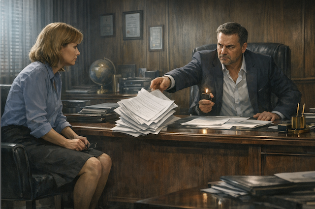 — Если завтра не подпишете, я уволю вас по статье, — холодно произнёс он. — Повод найду.